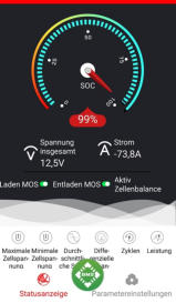 Über eine App kann man alle Daten des Akkus auslesen sowie versch. Parameter einstellen.