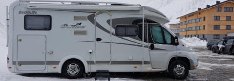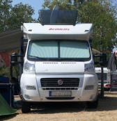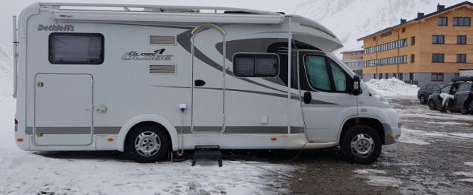 Sieht vielleicht etwas komisch aus, aber das Womo steht gerade. Egal ob Längsgefälle oder Quergefälle.