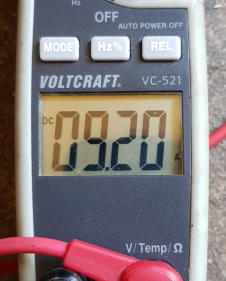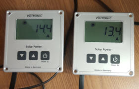 Messwertevergleich: Solarfernanzeige (noch vor dem Einbau) und mittels Amperemeter direkt am Solarregler. Fazit: Passt.