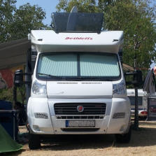 Sieht vielleicht etwas komisch aus, aber das Womo steht gerade. Egal ob Längsgefälle oder Quergefälle.